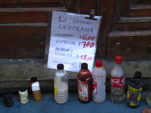 Along Florida Street one can turn just about every corner and find a “lustrada especial” or a shoeshine.  It’s important to note that not every lustrada is the same.  Prices can range from 5 pesos ($1.31 USD) to 20 pesos ($5.26 USD) and this doesn’t include tip.  If you decide to add a fresh gloss to your shoes before going to a Milonga (a tango evening), feel free to brush up on your Spanish with a true Porteño.  There are countless numbers of Lustradores to choose from and the value they add to your shoes will help your day shine.