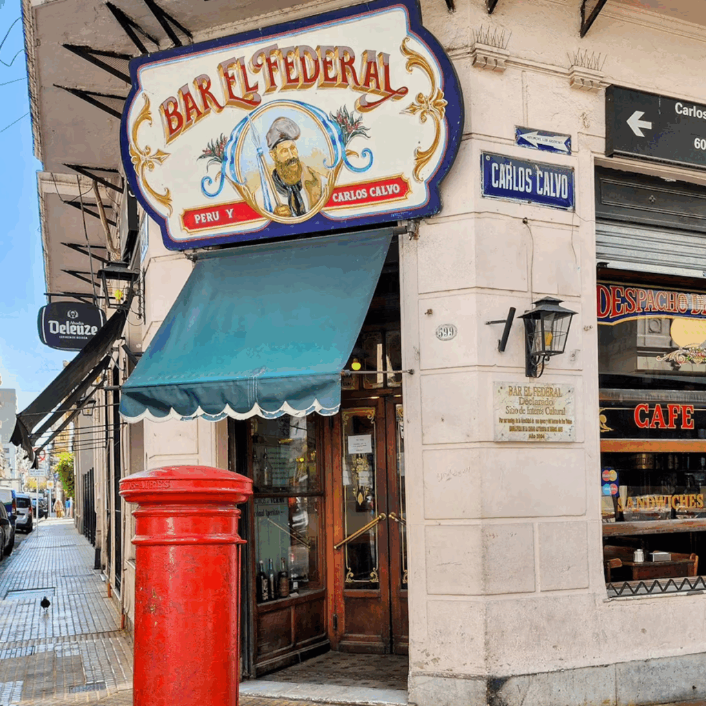 El FederalCarlos Calvo 599, San Telmo. A quintessential porteño bar (bodegón). Perfect for an afternoon happy hour or soaking up old-school San Telmo charm.Order a vermouth and a picada (local charcuterie board) for an authentic experience.
